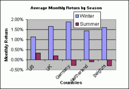 Well, let’s look at the statistics, shall we? Most stock market returns are delivered during the winter season from November to May. In the summer (June to October), however, the market seems to take a vacation. Not only does it not deliver much return, it is also more volatile.