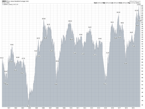 In the first two decades of the 20th century, I wobbled around: 100% up and 50% down was the norm of the decades. Nevertheless, I ended the two decades at 108.